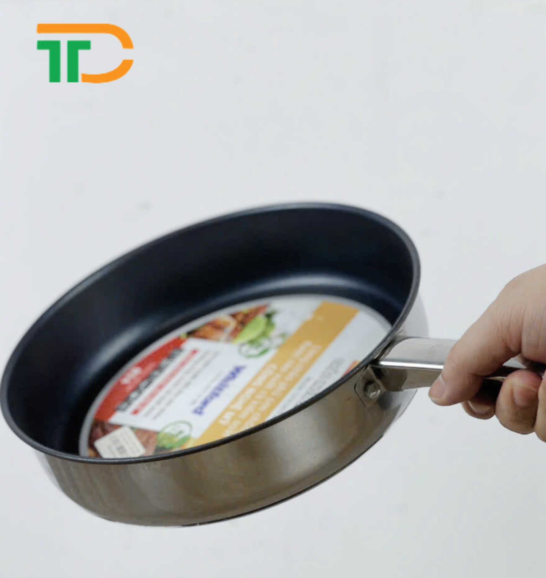 Tay cầm inox thiết kế dài, dễ cầm nắm, có sẵn móc treo tiện cất giữ; gắn vào thân bằng đinh tán chắc chắn, bảo vệ bạn không bị nóng khi di chuyển chảo, đảm bảo an toàn trong quá trình sử dụng, nâng nhấc, di chuyển.