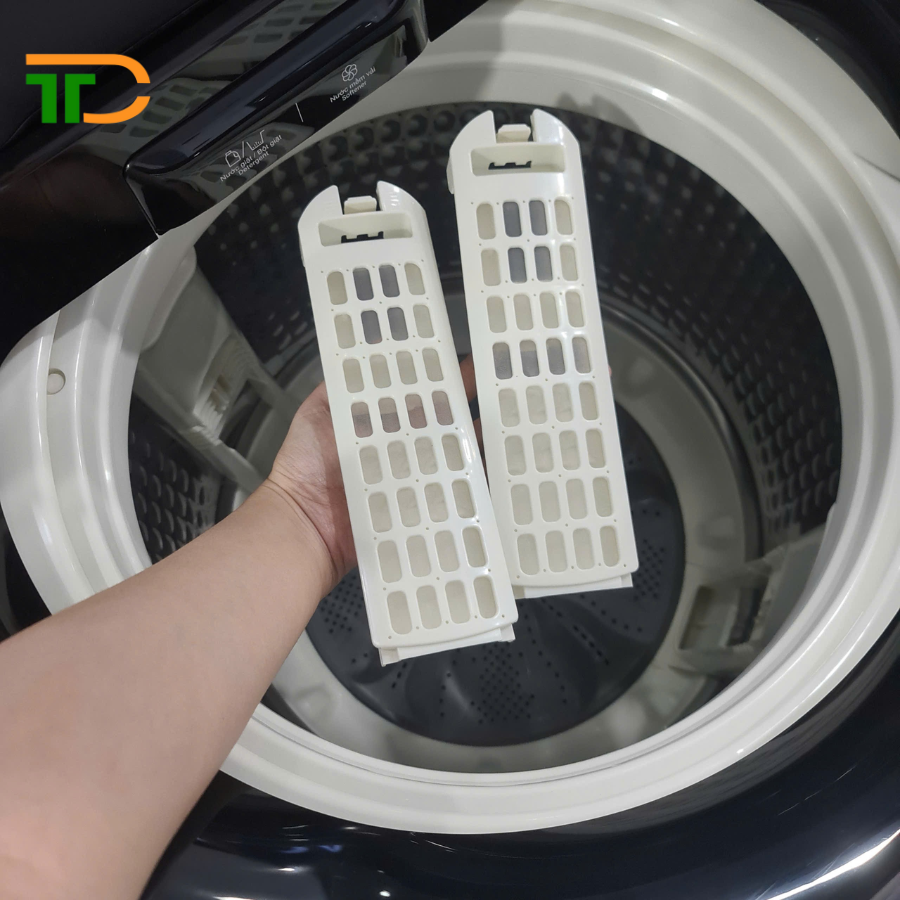 - Lồng giặt dạng Pillow được hoàn thiện từ chất liệu thép không gỉ, có thiết kế đặc biệt với bề mặt hình gối và lỗ rất nhỏ chỉ 2.5 mm giúp cho việc giặt quần áo dễ dàng, bảo vệ quần áo tránh hiện tượng xơ vải mắc vào lỗ thoát nước.