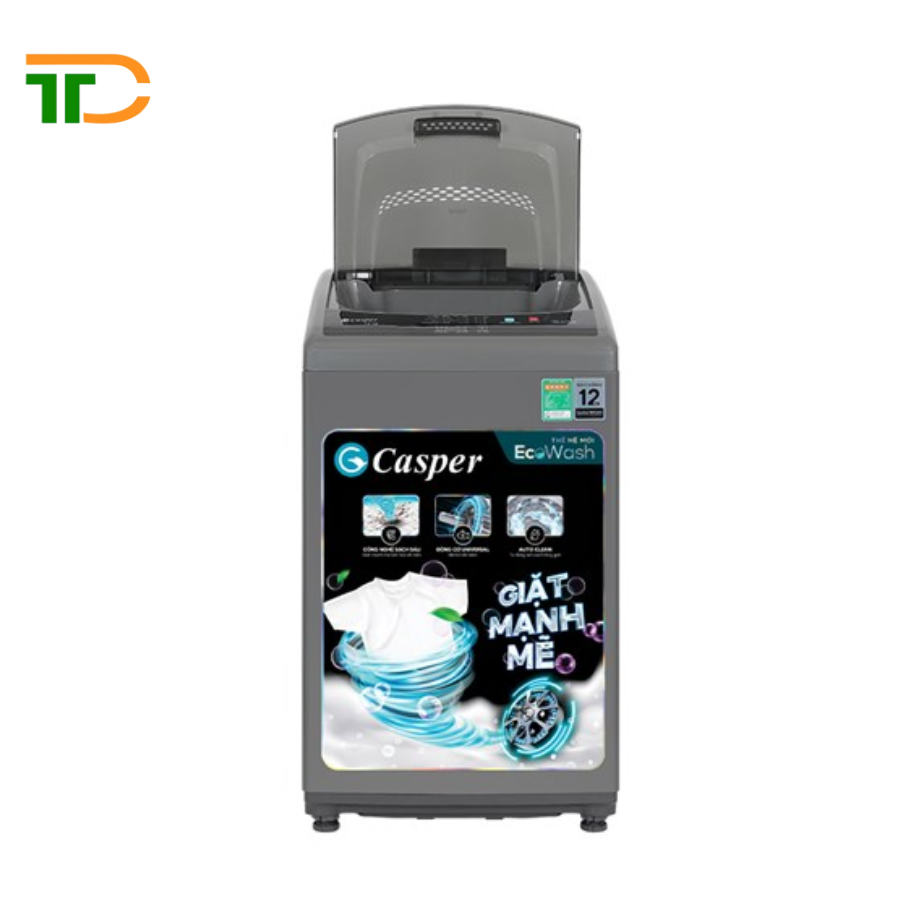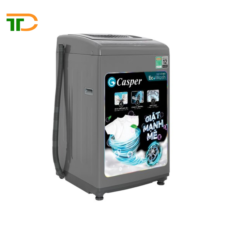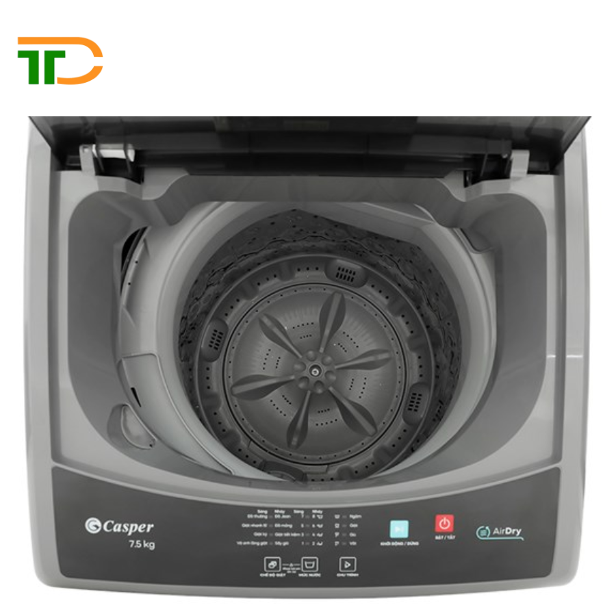 - Máy giặt Casper 7.5 kg WT-75NG1 được thiết kế theo kiểu máy giặt lồng đứng với chất liệu vỏ máy được làm bằng kim loại sơn tĩnh điện có độ bền cao, phù hợp cho mọi không gian lắp đặt.