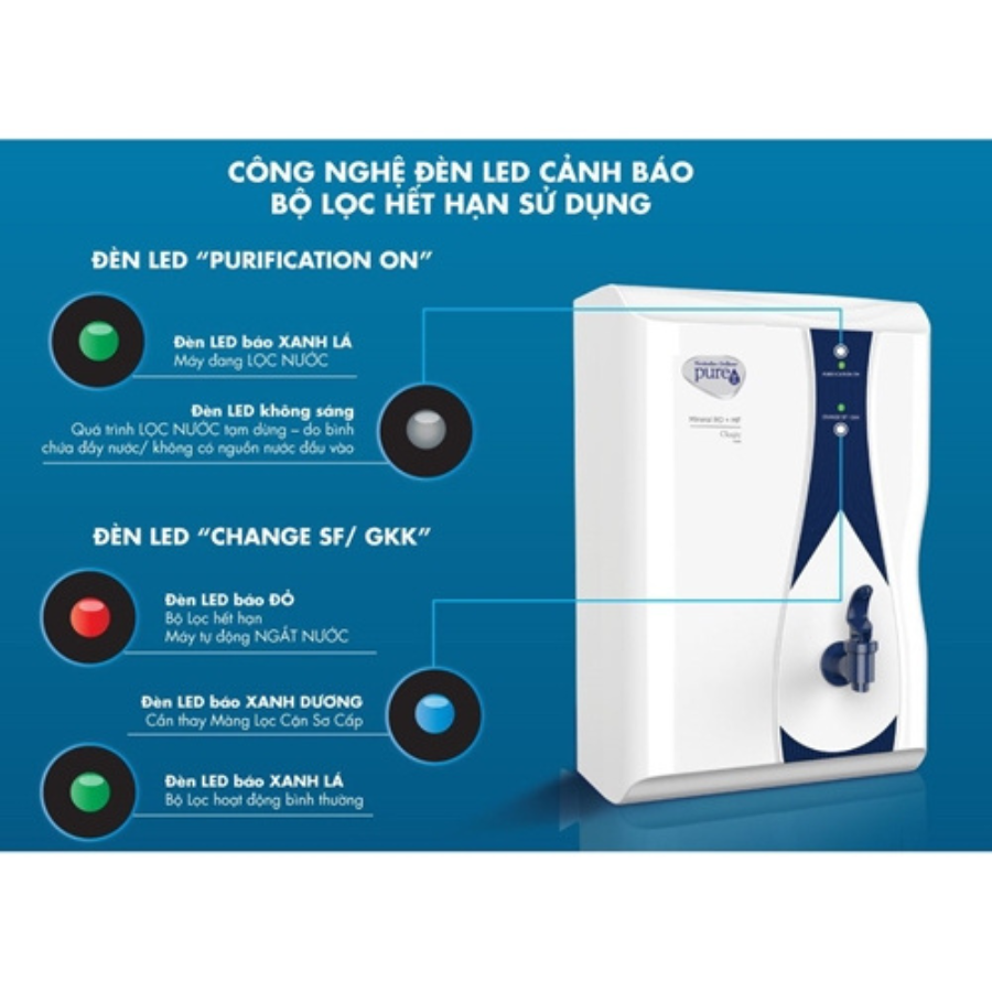 Máy lọc có khả năng lọc sạch đến 3000L nước và nước thải theo tiêu chuẩn công nghệ quốc tế. Đặc biệt là khả năng thông báo bộ lọc hết công suất trước 15 ngày và tự động ngắt nước khi bộ lọc hết hạn mà chưa được thay thế. Chính vì vậy, người dùng sẽ luôn yên tâm khi dòng nước luôn được đảm bảo tinh khiết tuyệt đối. Các lõi lọc được thiết kế đồng bộ nên trung bình 1 năm sẽ chỉ thay bộ lọc 1 lần, tiết kiệm thời gian và chi phí.
