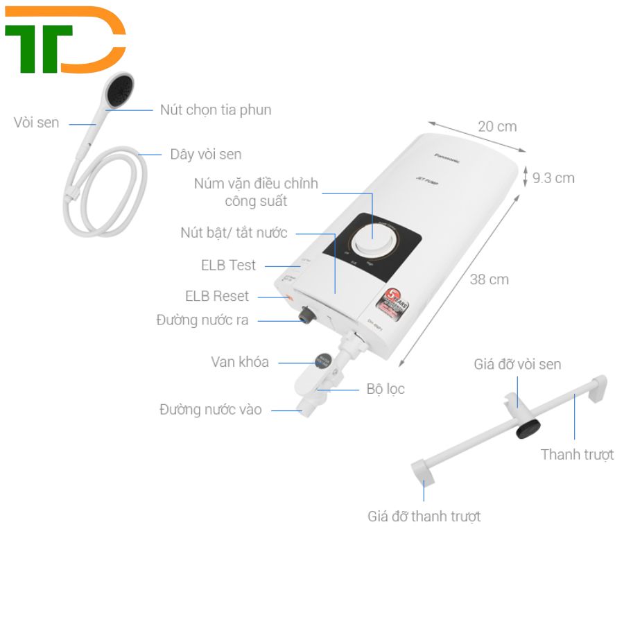 Máy nước nóng Panasonic DH-4NS3VW được trang bị 9 cơ chế an toàn, giúp bảo vệ người dùng trước mọi rủi ro về điện và nhiệt: