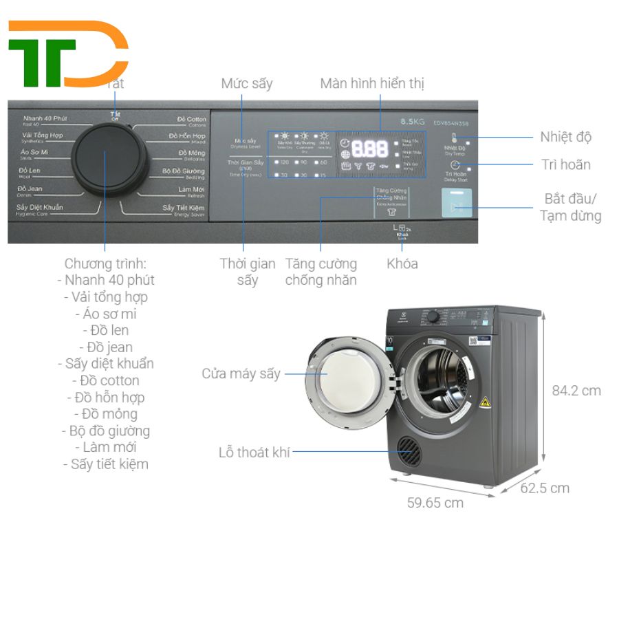 MÁY SẤY THÔNG HƠI ELECTROLUX 8.5KG EDV854N3SB