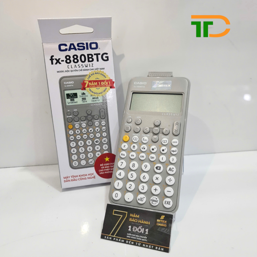 Máy tính Casio fx-880BTG thuộc dòng máy tính khoa học ClassWiz hiện đại, có thể tính và giải nhiều bài toán trong chương trình học cấp 2, 3 và đại học. Casio fx-880BTG được Bộ Giáo dục và đào tạo cho phép mang vào phòng thi. Mẫu máy tính này mang đến nhiều cải tiến về thiết kế - giao diện, tính năng nổi trội và độ chính xác cao so với các đời máy trước.
