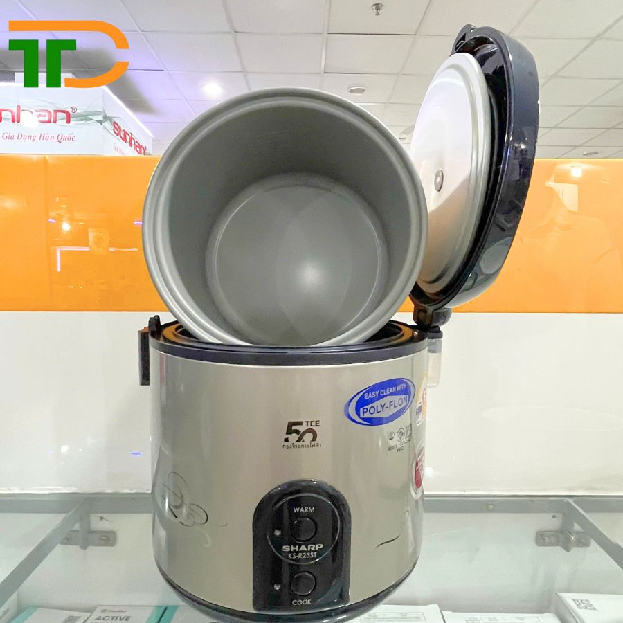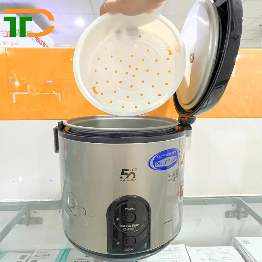 Nồi cơm điện Sharp KS-R231STV ứng dụng công nghệ nấu 3D tỏa nhiệt từ 3 hướng (từ đáy, xung quanh thân và nắp nồi), giúp cơm chín đều, không bị nhão hay khô, giữ nguyên hương vị và dinh dưỡng của hạt gạo.