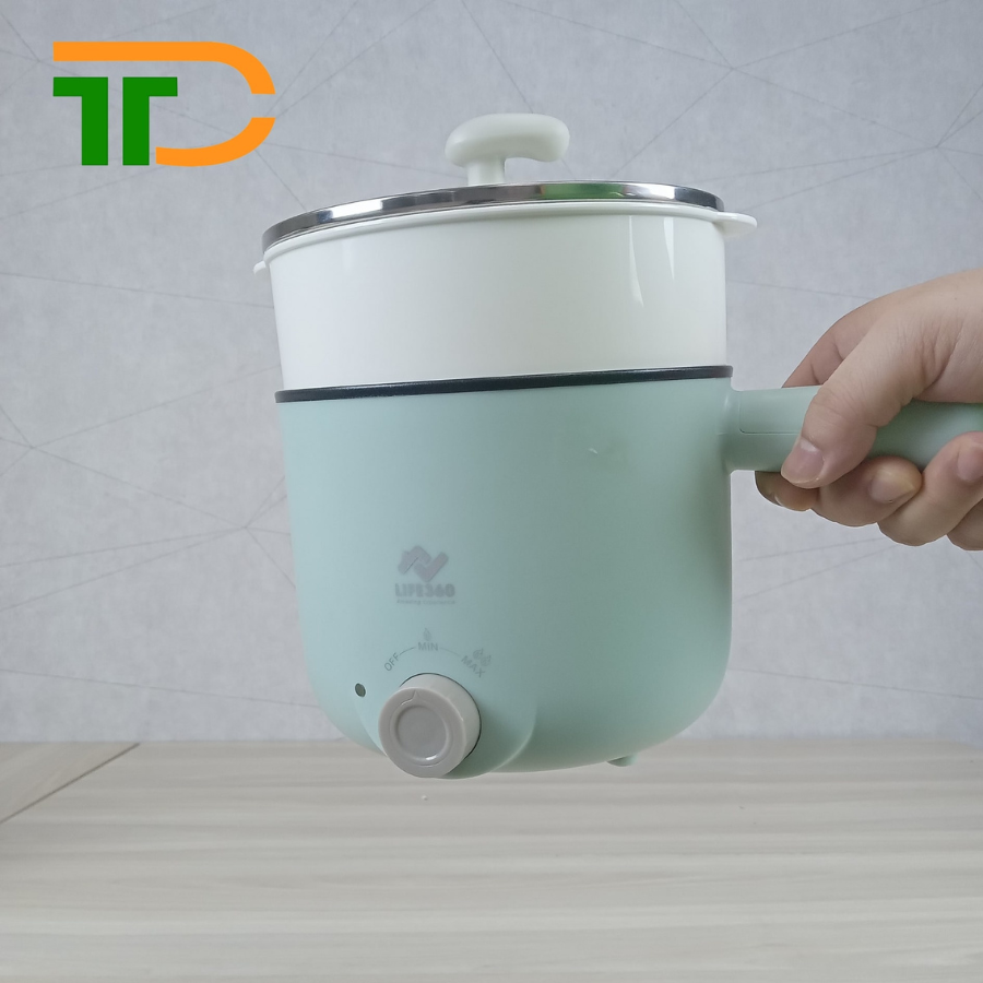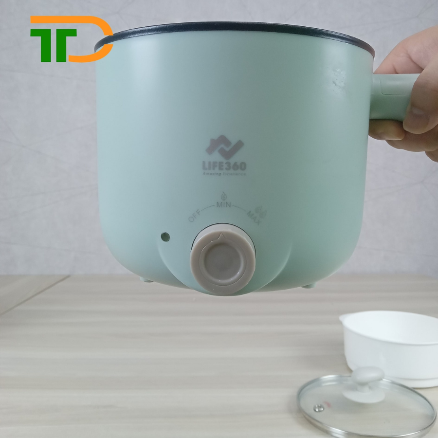 Nồi điện đa năng Life360 được thiết kế màu xanh hiện đại, trang nhã. Với phong cách thiết kế này phù hợp với style xu hướng gian bếp Hàn Quốc. Nồi điện đa năng được sản xuất trên dây chuyền công nghệ tiên tiến với các chất liệu cao cấp, rất thích hợp với các học sinh, sinh viên, và các hộ gia đình nhỏ,…