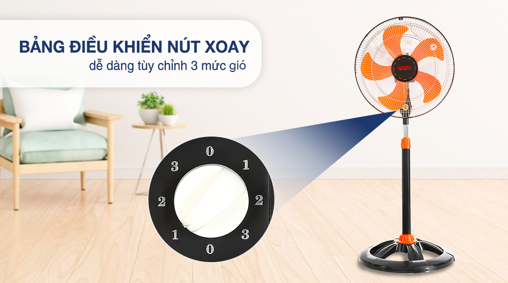- Quạt Senko trang bị duy nhất 1 chế độ gió thường sẽ thổi ra luồng gió với tốc độ đều đặn không luân phiên theo nhịp điệu lúc mạnh, lúc yếu.