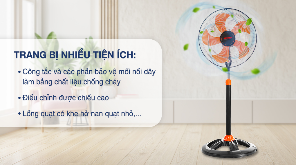 – Lồng quạt có khe hở nan quạt nhỏ, đảm bảo an toàn cho người dùng khi tiếp xúc gần với quạt.