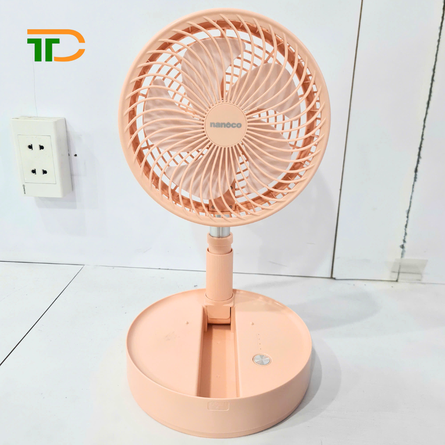 Quạt tích điện Nanoco được chế tạo từ nhựa ABS và hợp kim nhôm không chỉ bền bỉ mà còn nhẹ nhàng, dễ dàng mang theo khi di chuyển.