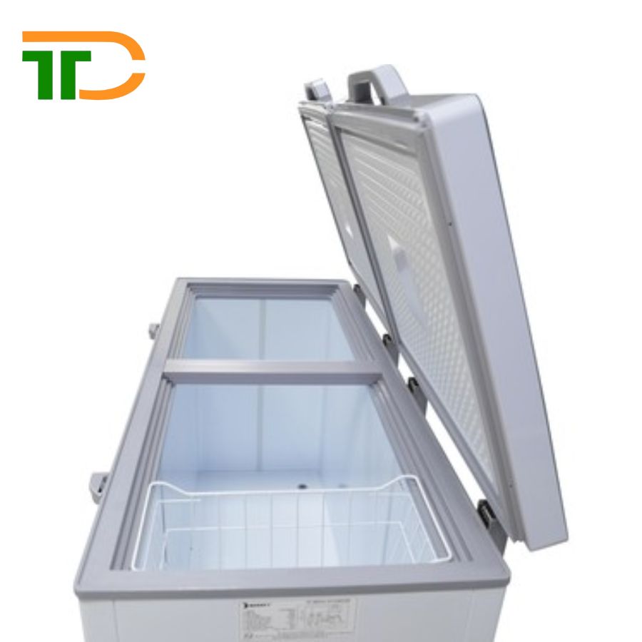 Tủ sử dụng dàn lạnh đồng nguyên chất, giúp tản nhiệt nhanh hơn, làm lạnh sâu dưới -18°C một cách nhanh chóng và giữ nhiệt lâu hơn so với các dòng tủ đông sử dụng dàn nhôm. Công nghệ làm lạnh 360 độ giúp hơi lạnh luân chuyển đồng đều trong tủ, đảm bảo thực phẩm được làm lạnh toàn diện, tránh tình trạng đóng đá cục bộ.