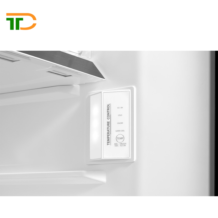 Ngoài ra, bảng điều khiển được bố trí nằm gọn bên góc phải (phía trong tủ lạnh) có kiểu thiết kế tinh tế và đơn giản nên giúp cho người dùng thao tác nhanh chóng ngay lần sử dụng đầu tiên.
